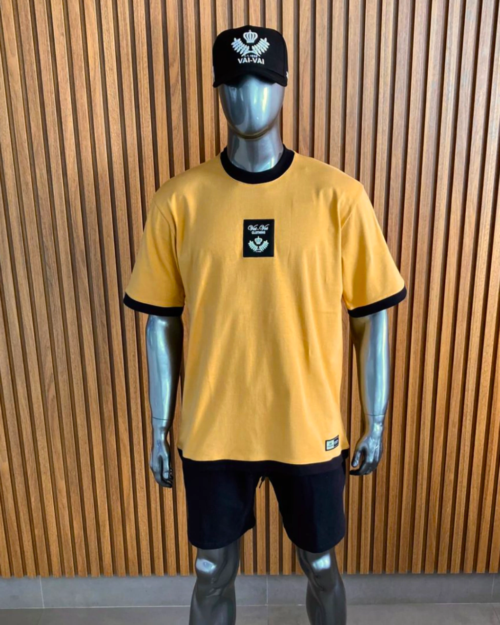 CAMISETA OVERSIZED CARAMELO COM BARRA PRETA